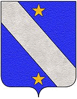Armories de la famille Challant, portant d'argent au chef de gueules à une cotice de sable brochant sur le tout, qui est Challant, chargée d'un anneau d'or en chef qui est Châtillon de la première branche. Devise: "Tout est monde et monde n'est rien". Repris dans Tillier (Jean-Baptiste de), Nobiliaire du Duché d'Aoste, Éditions de la Tourneuve, 1970 [voir la partie "Challant", première édition manuscrite de la première moitié du XVIII siècle, dans une copie manuscrite de la fin du XIXe siècle]).