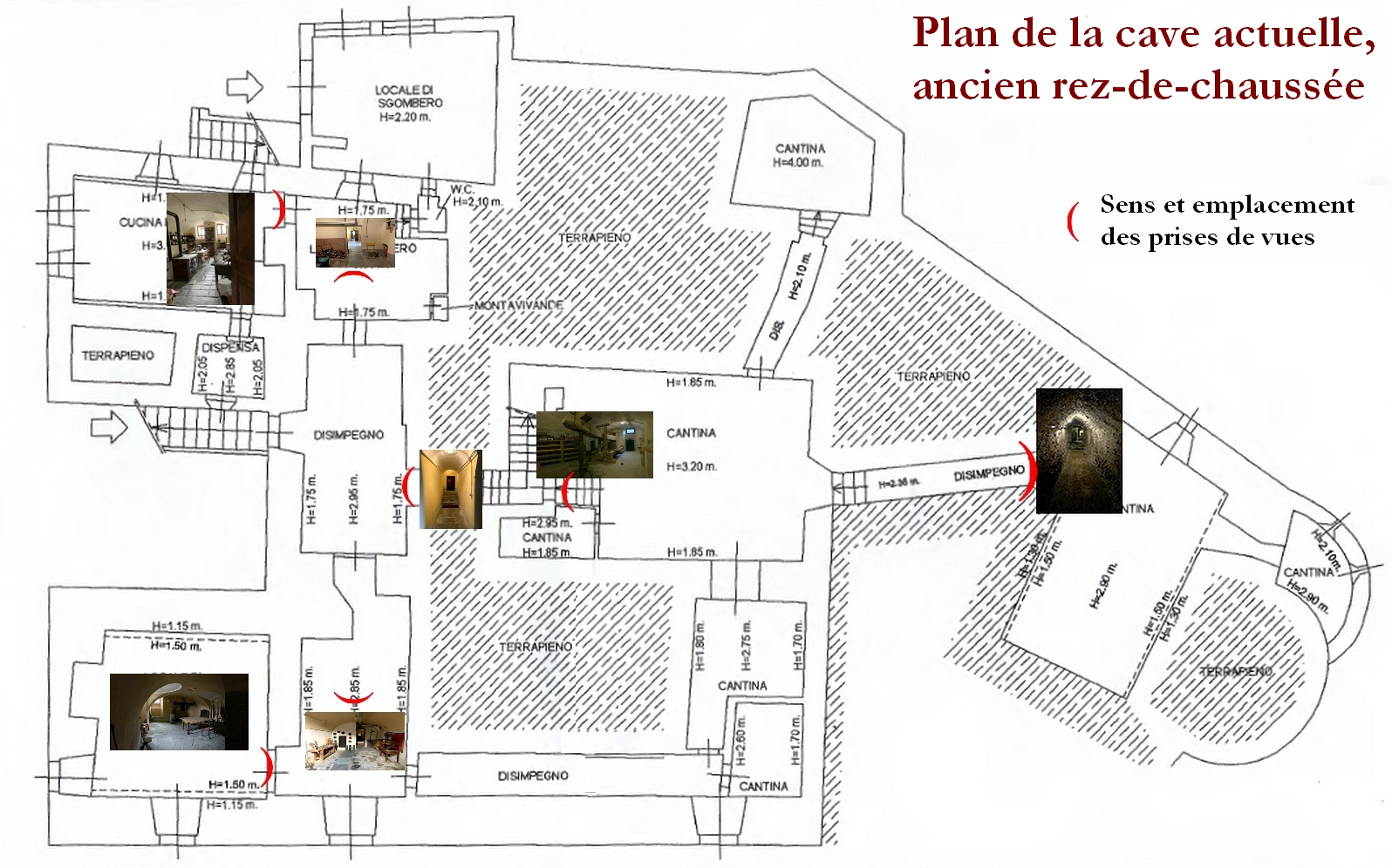 Plan du sous-sol du château de Châtillon, dans son état actuel, levé par Guido Dondeynaz, remanié et illustré de photos (collection privée).