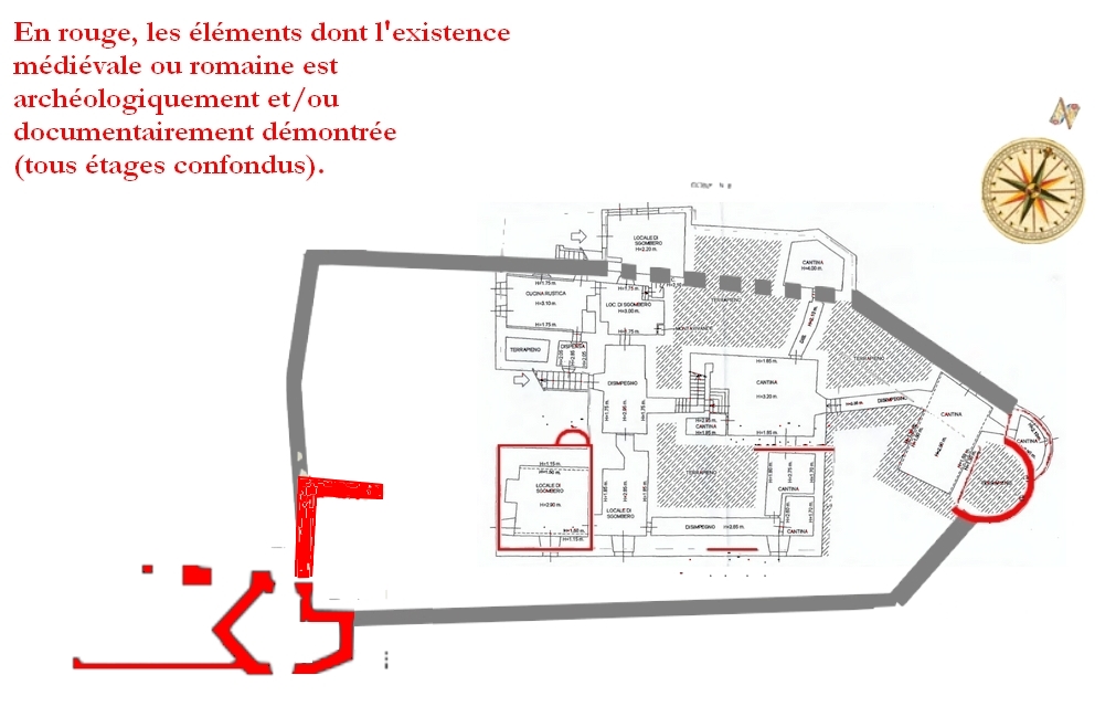 L'exploration de l'actuelle cave du château est peut-être la plus précieuse du point de vue médiéval et pour la première modernité, à la fois pour les pièces qu'elle présente, mais également pour les "terrepleins", correspondant probablement, à l'origine, à des affleurements rocheux, ou pour le moins a des zones non construites. Evidemment, sans connaître précisément les dates et l'ordre de construction des bâtiments il est très compliqué d'en tirer des conclusions justes.