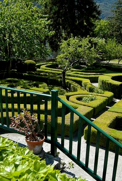 Château de Châtillon. Buis et éléments du décor du jardin d'agrément.